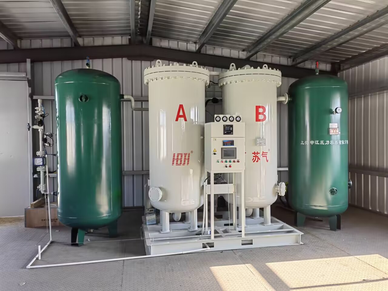 The ambient air is compressed and purified to remove oil, water and dust, and then enters into a PSA device composed of two adsorption towers filled with carbon molecular sieves. Compressed air flows through the adsorption tower from bottom to top, during which oxygen molecules are adsorbed on the surface of carbon molecular sieve, nitrogen flows out from the upper end of the adsorption tower and enters the coarse nitrogen buffer tank. After a period of time, the oxygen adsorbed on carbon molecular sieve in the adsorption tower is saturated and needs to be regenerated. Regeneration is achieved by stopping the adsorption step and reducing the pressure of the adsorption tower. The two adsorption towers conduct adsorption and regeneration alternately to ensure the continuous output of nitrogen.