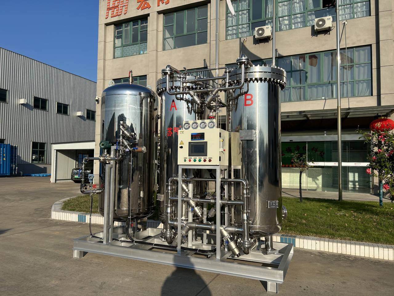 Generally, the water needle (penicillin, etc.) and large infusion (amino acid, etc.) which are easy to oxidize need nitrogen flushing protection, otherwise the liquid medicine is easy to oxidize in the storage period, that is to say, deterioration. Generally, before packaging, the method of nitrogen flushing before nitrogen flushing (or single nitrogen flushing) is used to reduce the oxygen concentration in ampoules or infusion bottles to less than 0.5%, which can guarantee the quality of liquid medicine for a long time. At present, the equipment purchased by general manufacturers is about 5-20 m3 / h, with purity of 99.99%. The difference between medical nitrogen generator and other nitrogen equipment is that due to the GMP standard of the pharmaceutical industry, the parts in contact with drugs or pharmaceutical solutions are made of stainless steel and the requirements for sterilization. The equipment needs to be made of stainless steel, and the nitrogen outlet of the equipment is equipped with a sterilization filter device. It is also because of the high overall requirements of pharmaceutical plants for equipment, usually with high-end configuration.