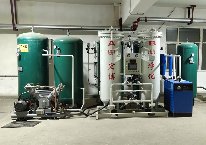 1. Nitrogen equipment, with an outlet nitrogen flow rate of 10Nm3/h to 500Nm3/h, a nitrogen purity of 99.99% or above, and a nitrogen pressure of 14kg to 22kg. The system consists of a compressed air system, an air purification system, a nitrogen production device, and a booster equipment.