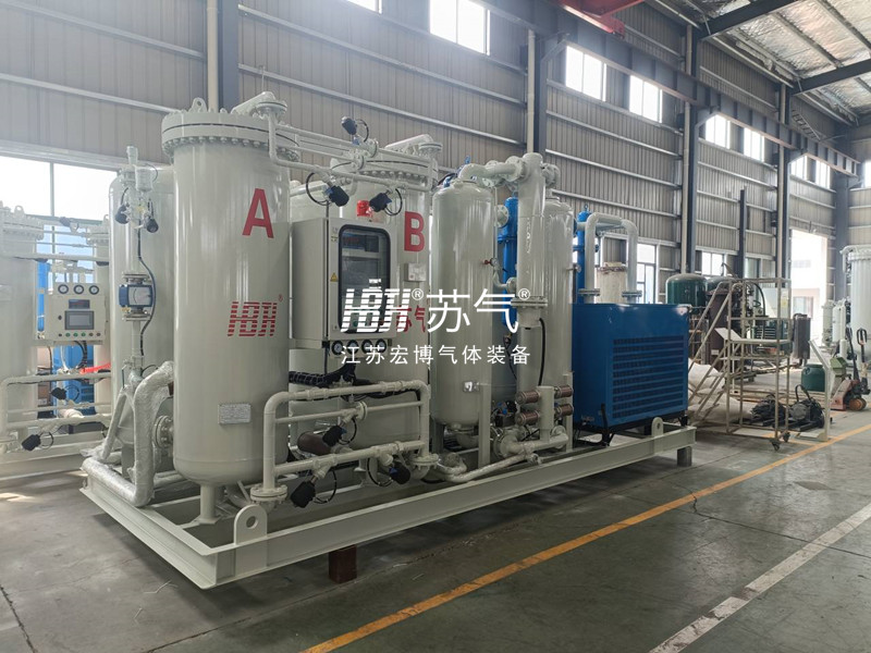 The ambient air is compressed and purified to remove oil, water and dust, and then enters into a PSA device composed of two adsorption towers filled with carbon molecular sieves. Compressed air flows through the adsorption tower from bottom to top, during which oxygen molecules are adsorbed on the surface of carbon molecular sieve, nitrogen flows out from the upper end of the adsorption tower and enters the coarse nitrogen buffer tank. After a period of time, the oxygen adsorbed on carbon molecular sieve in the adsorption tower is saturated and needs to be regenerated. Regeneration is achieved by stopping the adsorption step and reducing the pressure of the adsorption tower. The two adsorption towers conduct adsorption and regeneration alternately to ensure the continuous output of nitrogen.